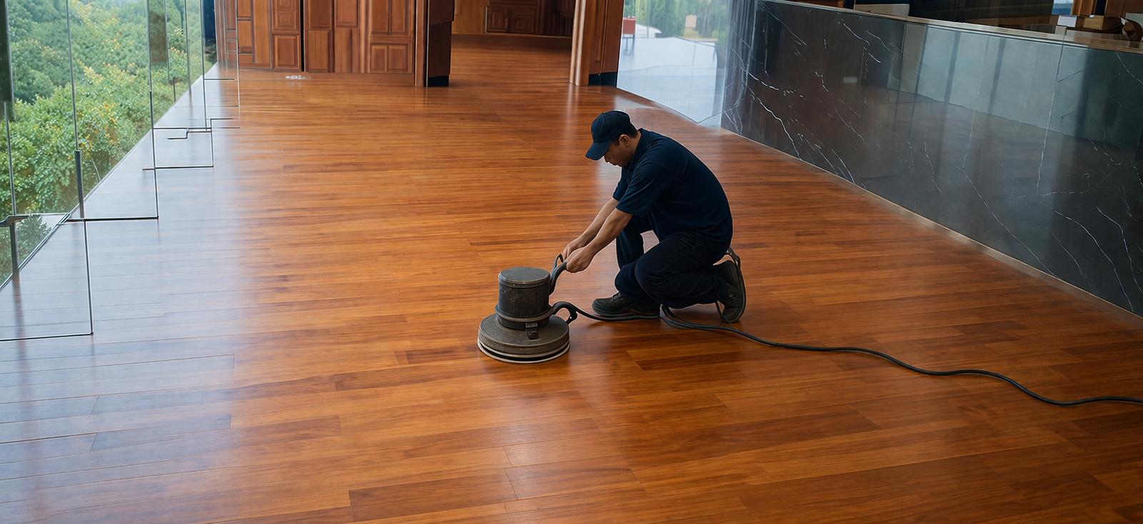 “At our company, we are committed to delivering high-quality wood floor polishing services using modern techniques and premium materials. We focus on precision, durability, and customer satisfaction—ensuring every floor gets a flawless, elegant finish.”